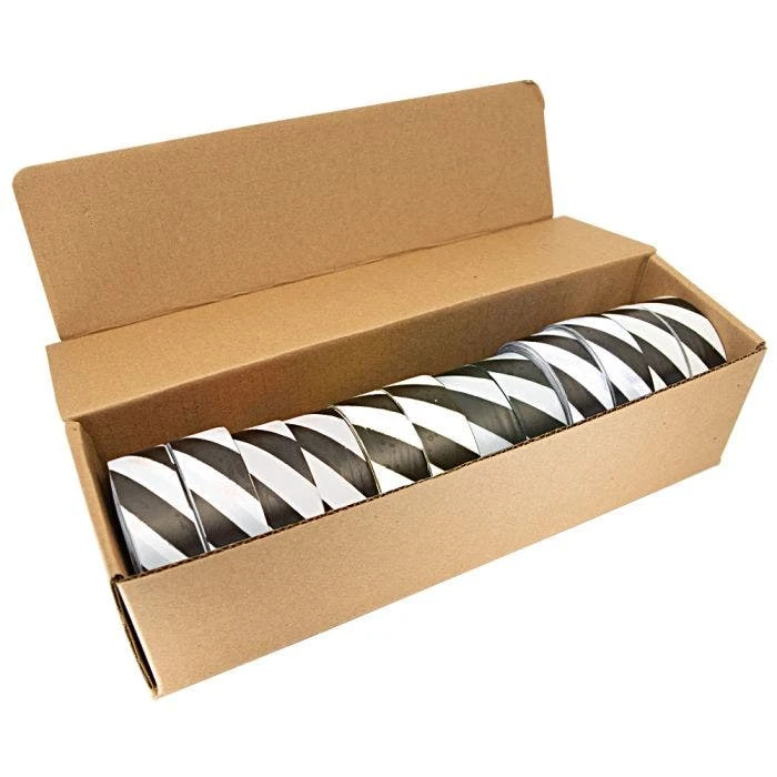 - Box of 12 rolls of Black and White Candy Stripe Tagging Tape