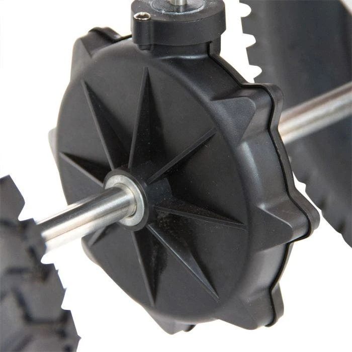 The Chapin 100lb IceMelt Spreader has pneumatic tires that roll easily over any kind of terrain.