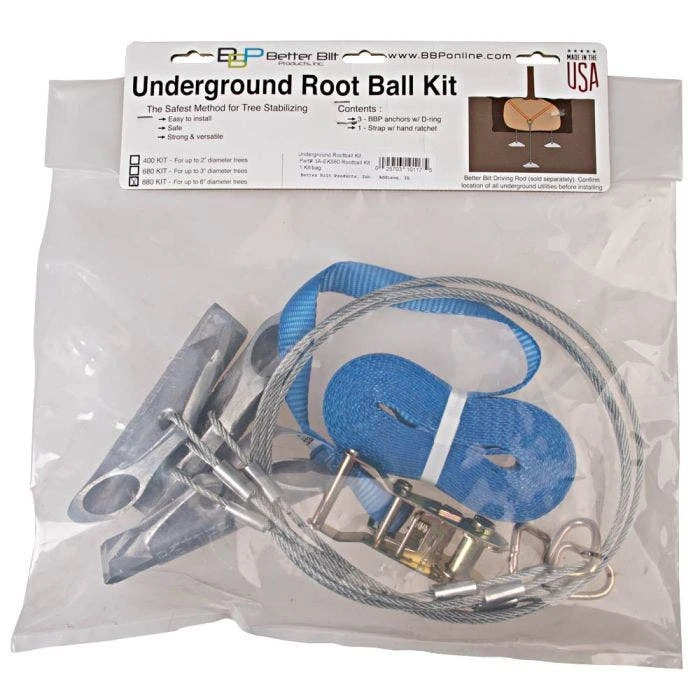 Better Bilt Products designed their underground root ball support kits to secure trees and shrubs in place by the root mass. They keep new plantings in a straight, upright position with none of the problems of traditional cabling systems.